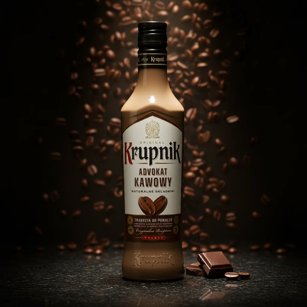 Krupnik Advokat Kawowy to opowieść o idealnym mariażu. To połączenie dwóch wielkich przyjemności – aksamitnego, tradycyjnego ajerkoniaku i głębokiego aromatu świeżo palonej kawy. To gotowa odpowiedź na pytanie, co najlepiej pasuje do popołudniowej chwili relaksu.